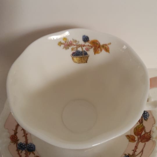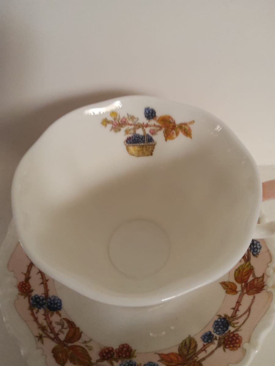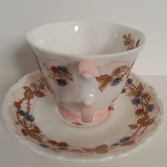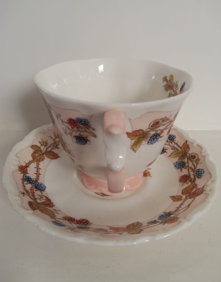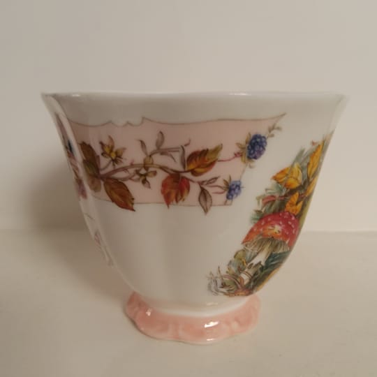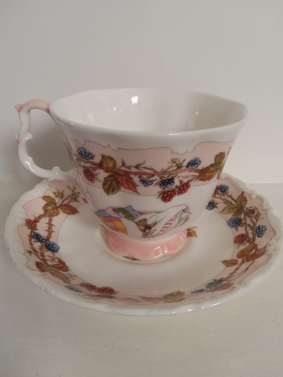 Красив винтидж колекционерски комплект за чай Royal Doulton "Есен" от серията Brambly Hedge Four Seasons. Комплектът включва миниатюрна чаша за чай с подходяща чинийка от фин порцелан.