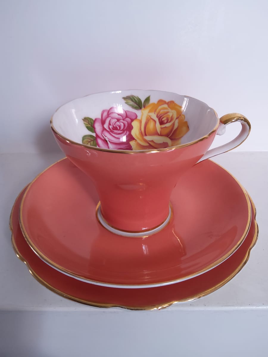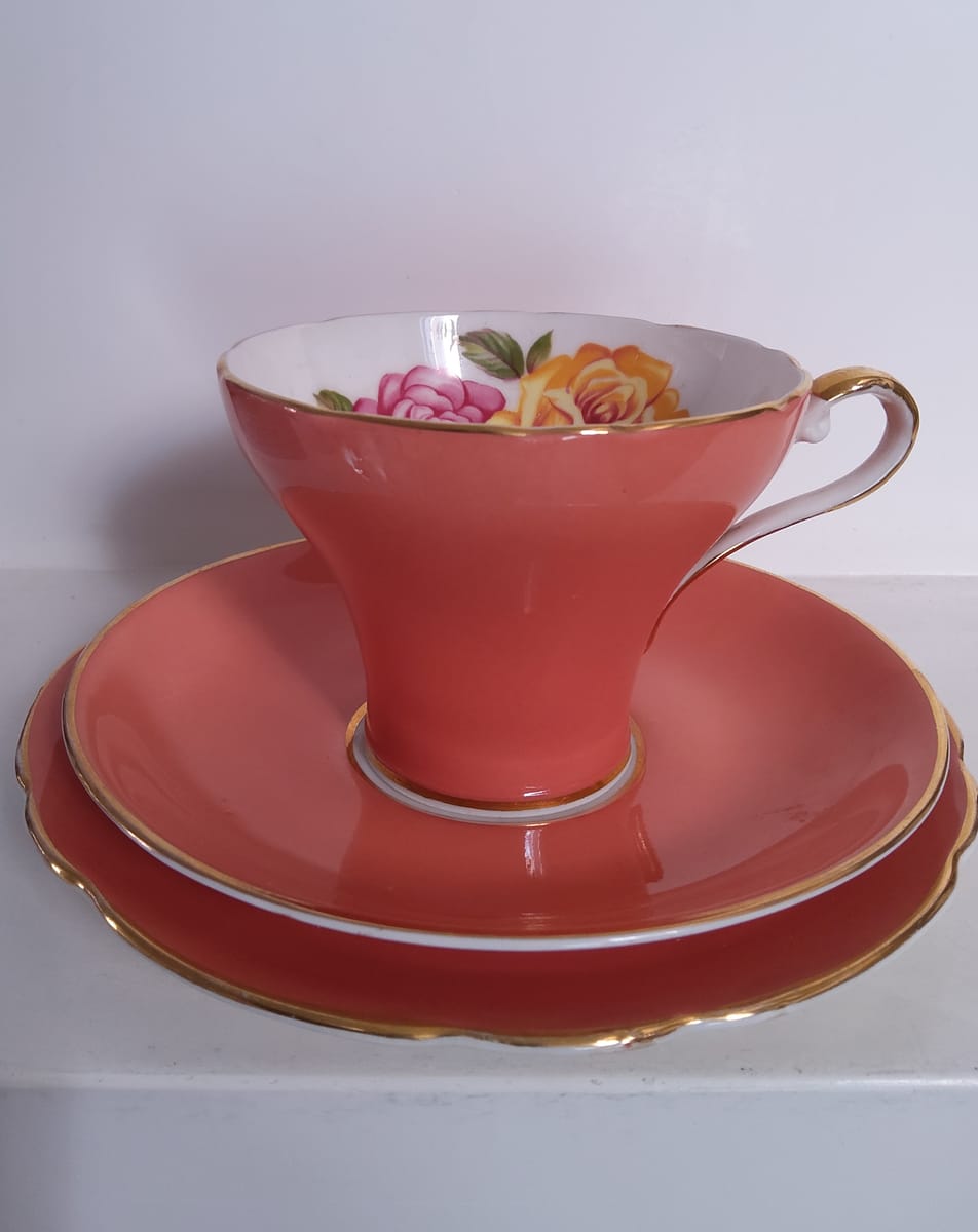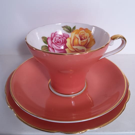 Фината порцеланова структура и класическият английски дизайн превръщат този комплект в истинско произведение на изкуството – перфектен както за колекционери на винтидж порцелан, така и за ценители на стилното сервиране на чай.
