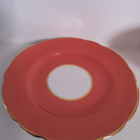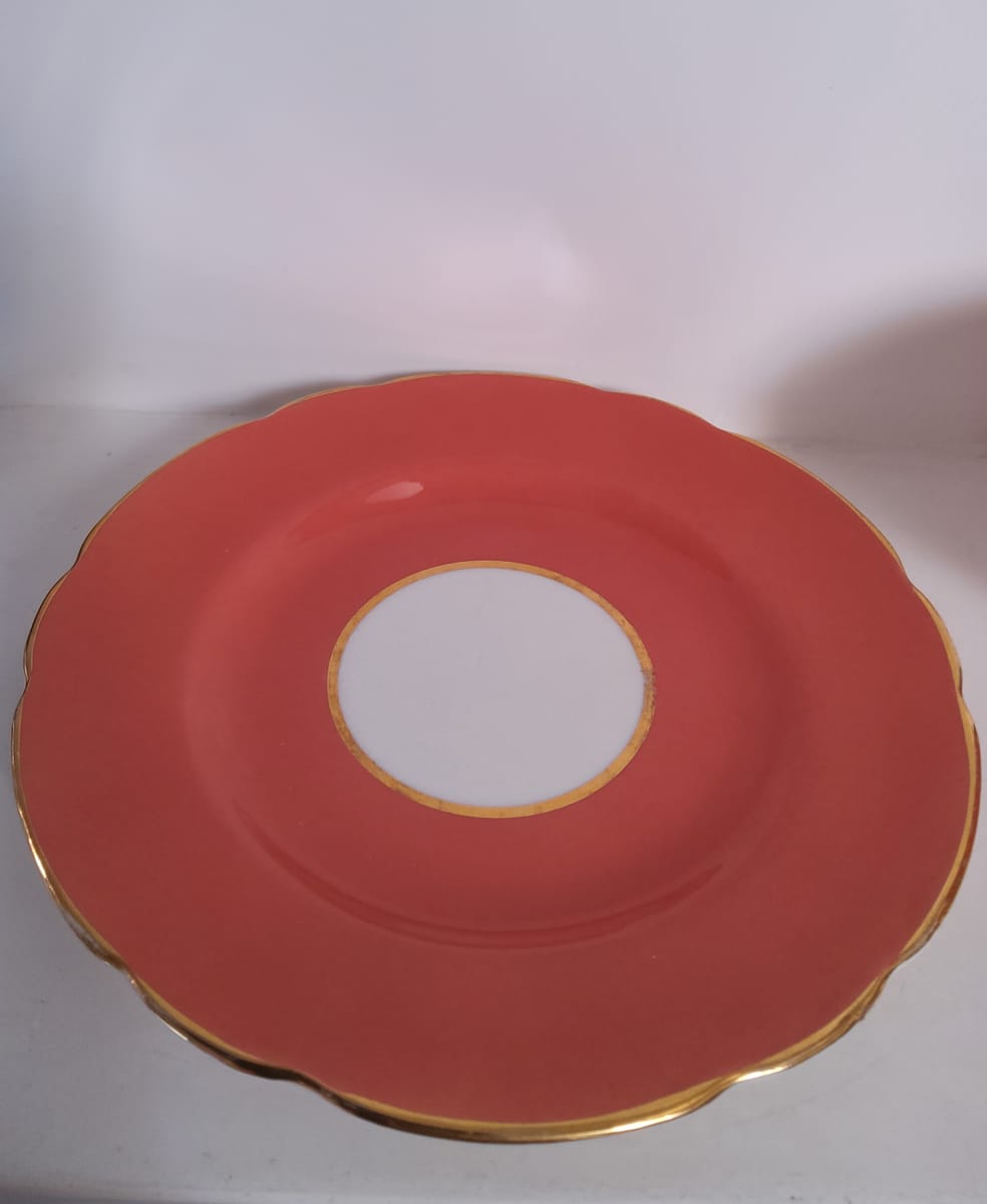 Изработен в периода 1930 – 1970 г., този великолепен сет впечатлява със своя топъл коралов цвят, изящно изрисувани розови и златисти рози, както и с деликатния ръчно нанесен златен кант, който подчертава неговата аристократична визия.