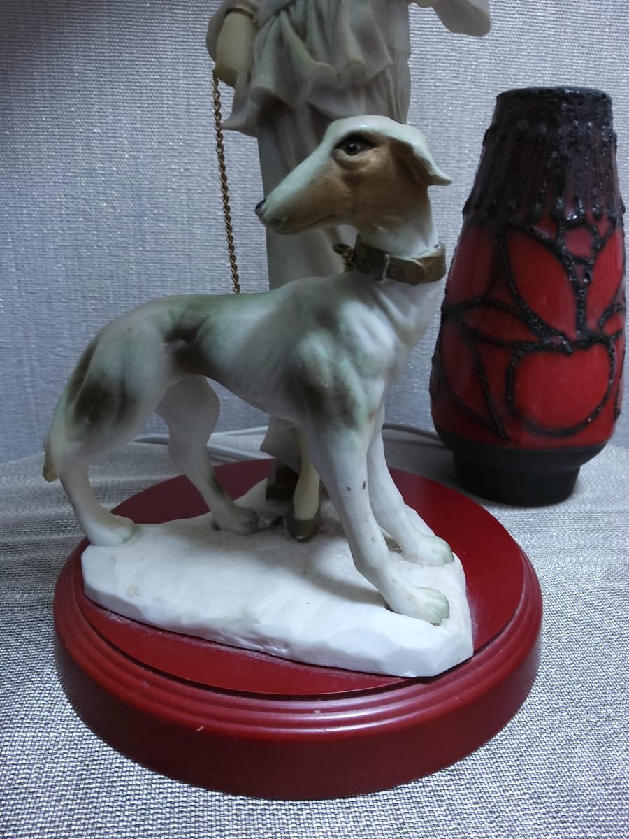 Много добро винтиж състояние. Леко синьо оцветяване по краката на хрътката.