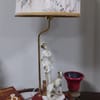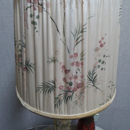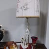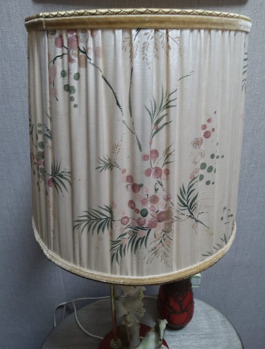 Работеща лампа с красива шапка от плат с нежни флорални мотиви.