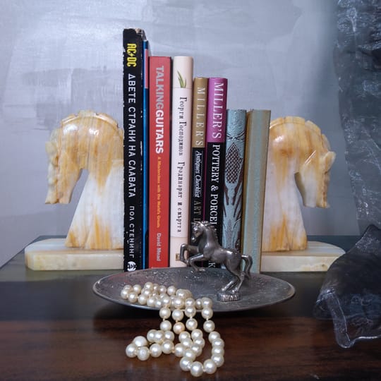 • Стил: Класически дизайн с конски мотиви, идеален за библиотека в стил "Dark Academia" или офис в стил Mid-Century Modern.