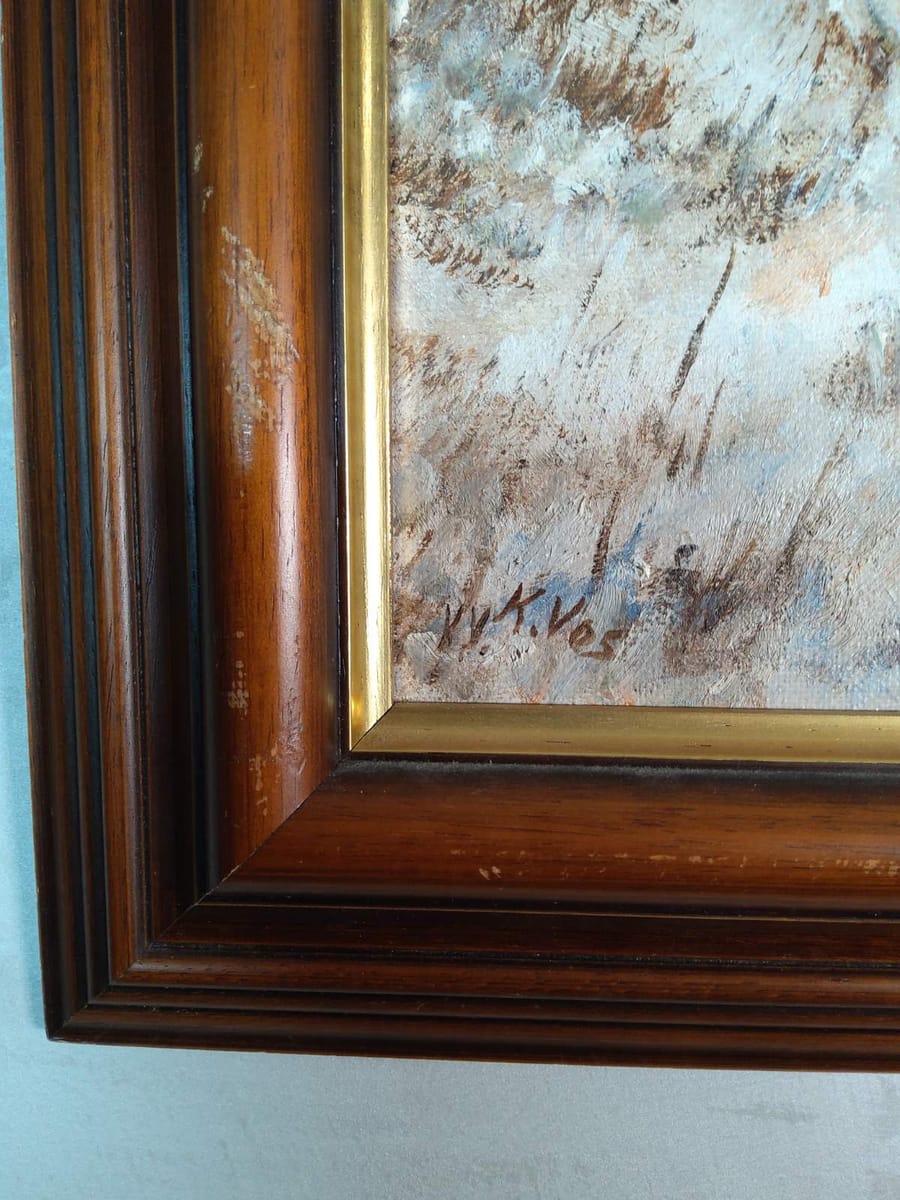 Великолепна дървена масивна рамка с подрамка в златисто оцветяване.